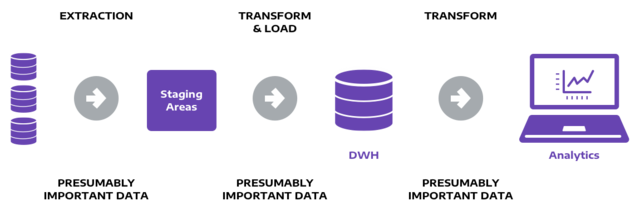 Extract-Load-Transform (ELT) is a new paradigm for loading data to a data warehouse. In an ELT process, after extracting data from all data sources, you immediately load it to a centralized data repository. Today’s cloud-based data warehouses support large storage and scalable compute, so it’s no longer necessary to keep data small and summarized. Many organizations maintain massive data pools in the cloud at low cost and leverage ELT tools for processing.
