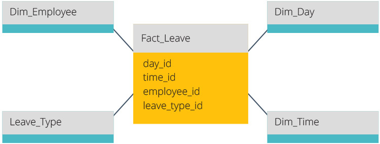 The star schema takes the information from the fact table and splits it into denormalized dimension tables, to improve query speed. Only one join is needed to link fact tables to each dimension.